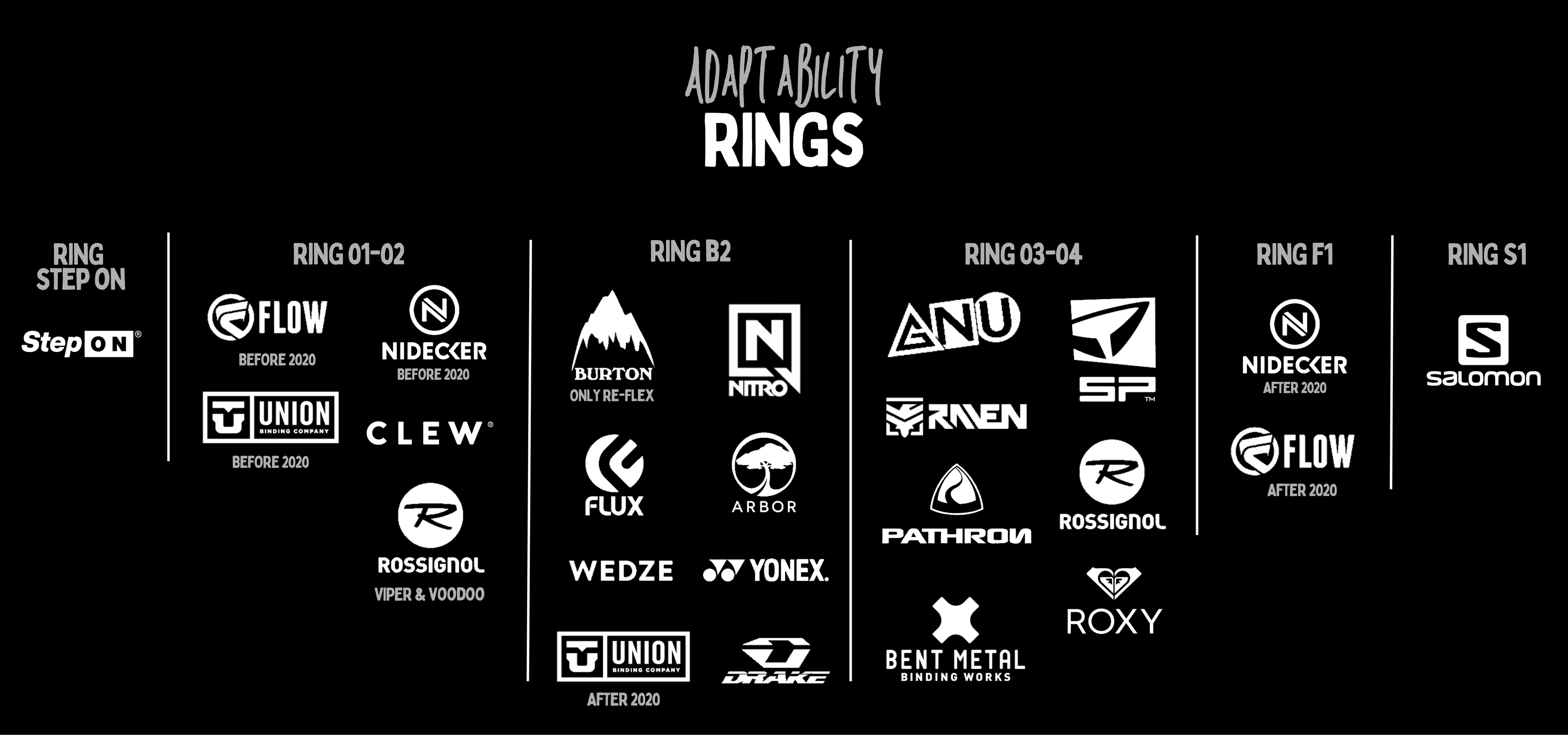 Compatible with all types of snowboards (Channel and 4x4 classic)